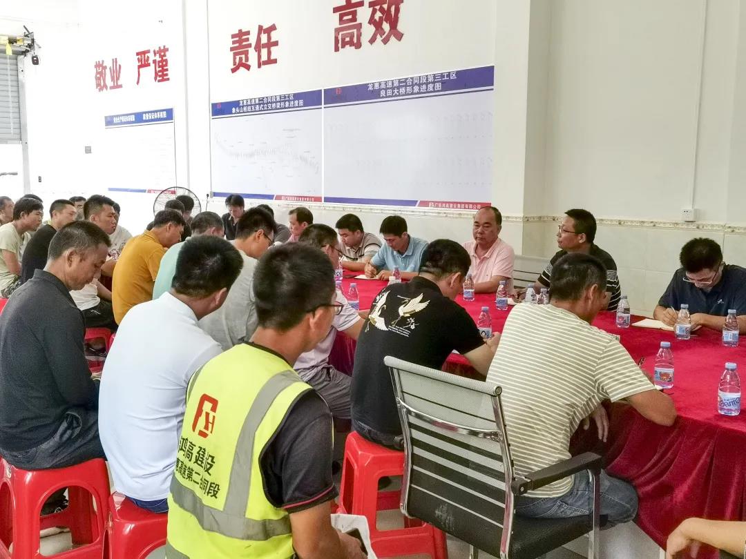 6月11日,匯華集團(tuán)董事長(zhǎng)麥照華到惠龍3標(biāo)工地現(xiàn)場(chǎng),實(shí)地檢查項(xiàng)目施工情況,鼓勵(lì)大家要加快推進(jìn)工程項(xiàng)目建設(shè),精益求精,致力打造甲方滿意的品質(zhì)工程。 惠龍三、四工區(qū)召開質(zhì)量安全專題會(huì)議